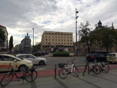 Вечерний вид из окна моего номера. На следующий день позавтракал на террасе на 6-м этаже, и выдвинулся в сторону Maximillanstrasse.