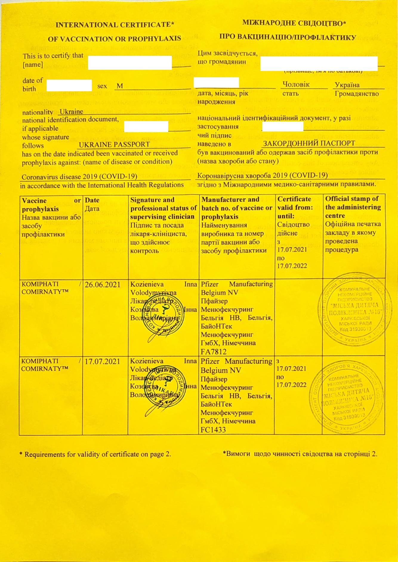 Украинский сертификат о вакцинации