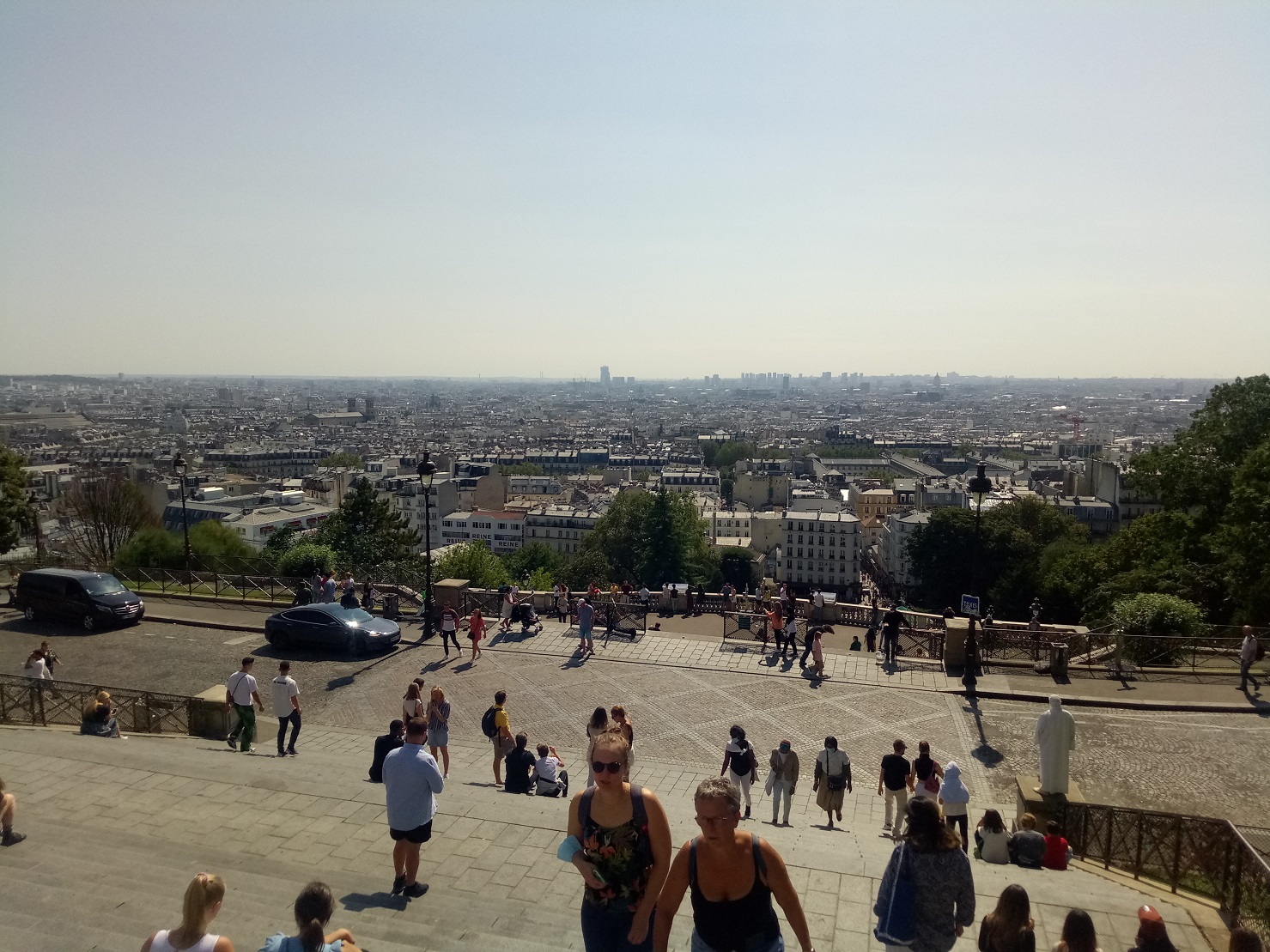 Базилика Сакре Кер. Вид на город из Монмартра. Потом решил продлить маршрут Убера и съездить поближе к Эйфелевой башне.