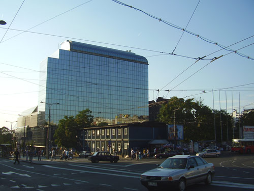 Побомблені будівлі натівцями ніхто і не відбудовує, це просто вже історія, і поряд з новими банками, фін. установами може стояти напів згоріла будівля в яку колись влучила бомба.