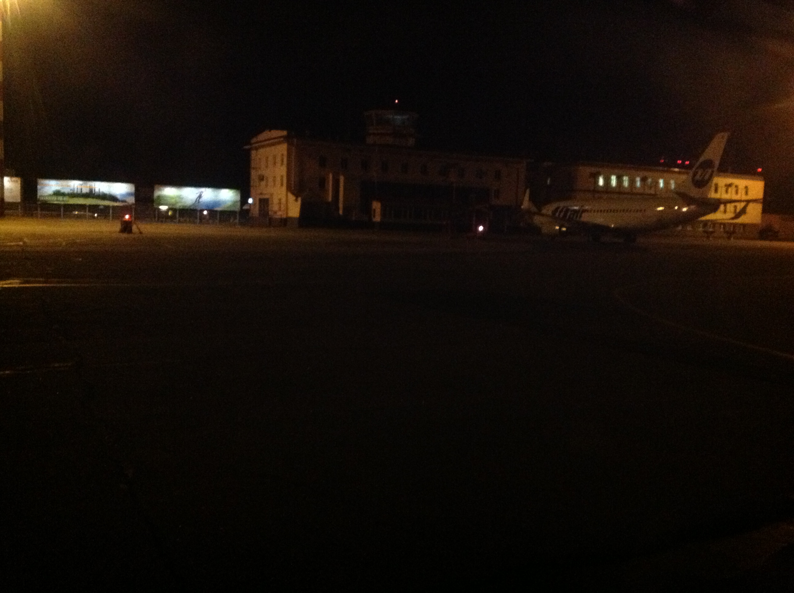 Вылетели мы с небольшим опозданием и прилетели на 20 минут позже расписания - в 2:20 ночи (лететь час-двадцать). Посадка была не очень приятной - довольно резкий удар об полосу, собранную из плит, с последующим тарахтением по ним, словно на старом трамвае по кривым рельсам.