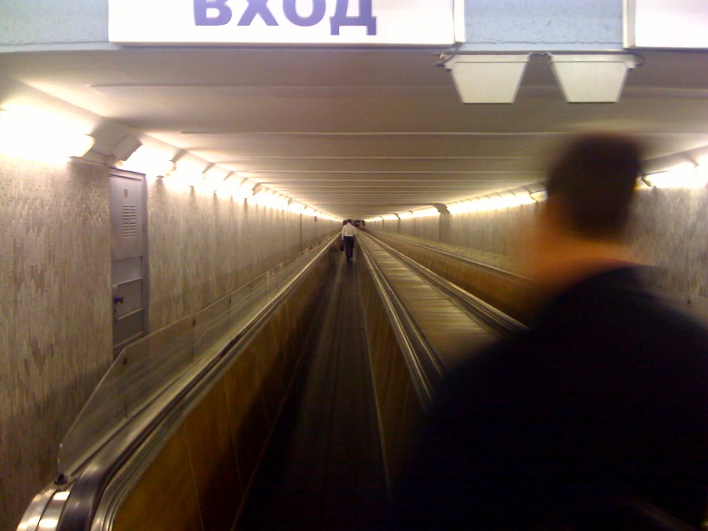 Борт московского рейса (опять Ан-148) стоял у одного из сателлитов, которыми знаменито Пулково - круглые здания-островки посреди лётного поля, попасть в которые можно только через подземные траволаторы. То, что в СССР казалось почти заграницей, теперь выглядит ужасным ретро. Если по траволатору не идти, а на нём просто стоять, то такое ощущение, что он едет по каким-то кочкам.