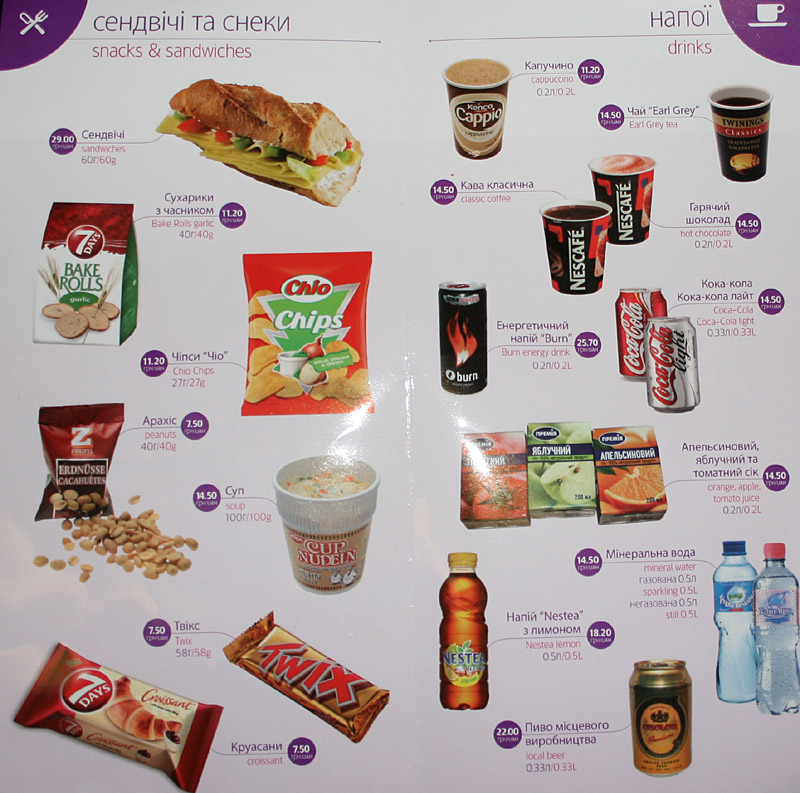 Довелось дивитися меню і купувати щось, бо їсти хотілося...