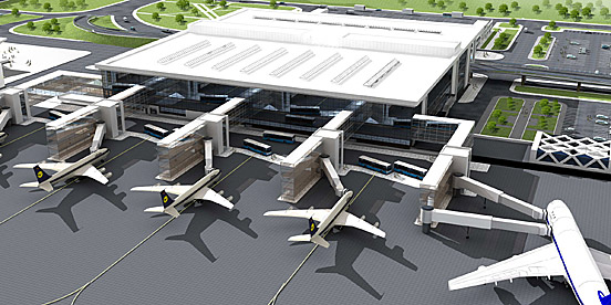 По словам Б.Талу, работы по строительству терминала продолжаются по графику. Сейчас завешено 35% строительных работ на сумму 30% от общей сметы строительства, составляющей 450 млн долл. (с НДС). Общая площадь терминала составит 100 тыс. кв. м, из них 20 тыс. площадь перрона. Возле терминала будет 11 посадочных мест для самолетов, также будет построена автомобильная эстакада длиной 1,4 км и подъездная дорога к терминалу длиной 4 км.