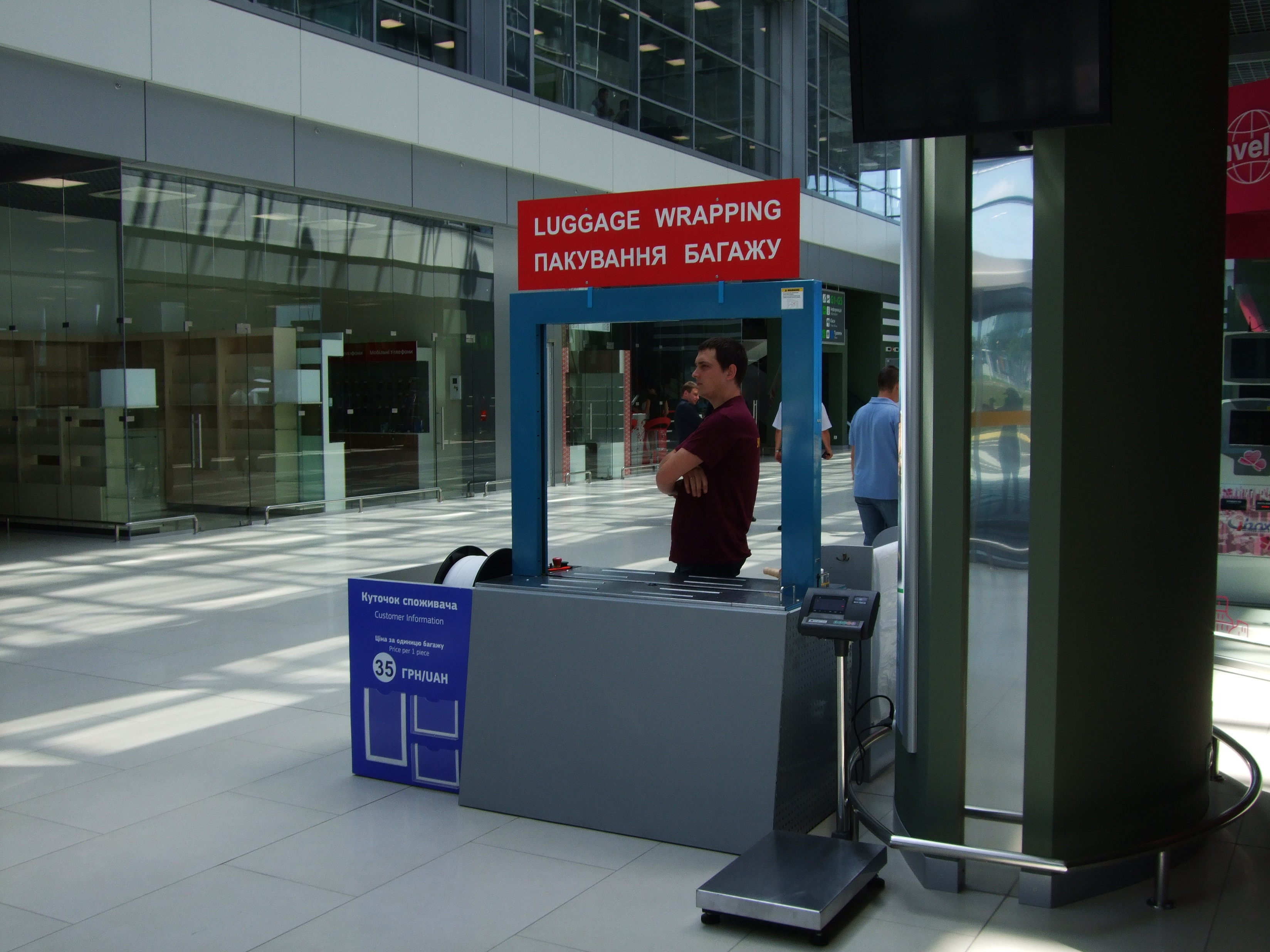 Когда в 96-м году улетал в США на учёбу, упаковки багажа не было в Борисполе, а прилететь без вещей не хотелось, перед регистрацией, я обмотал рюкзак широким скотчем. Полностью. Можете себе представить звук, который все должны были слушать минут 10. Удивляюсь, как мой кокон не распотрошили службы безопасности по дороги, но в Миссури он прилетел целёхонький. Потом рюкзак очень долго был невыносимо липкий.