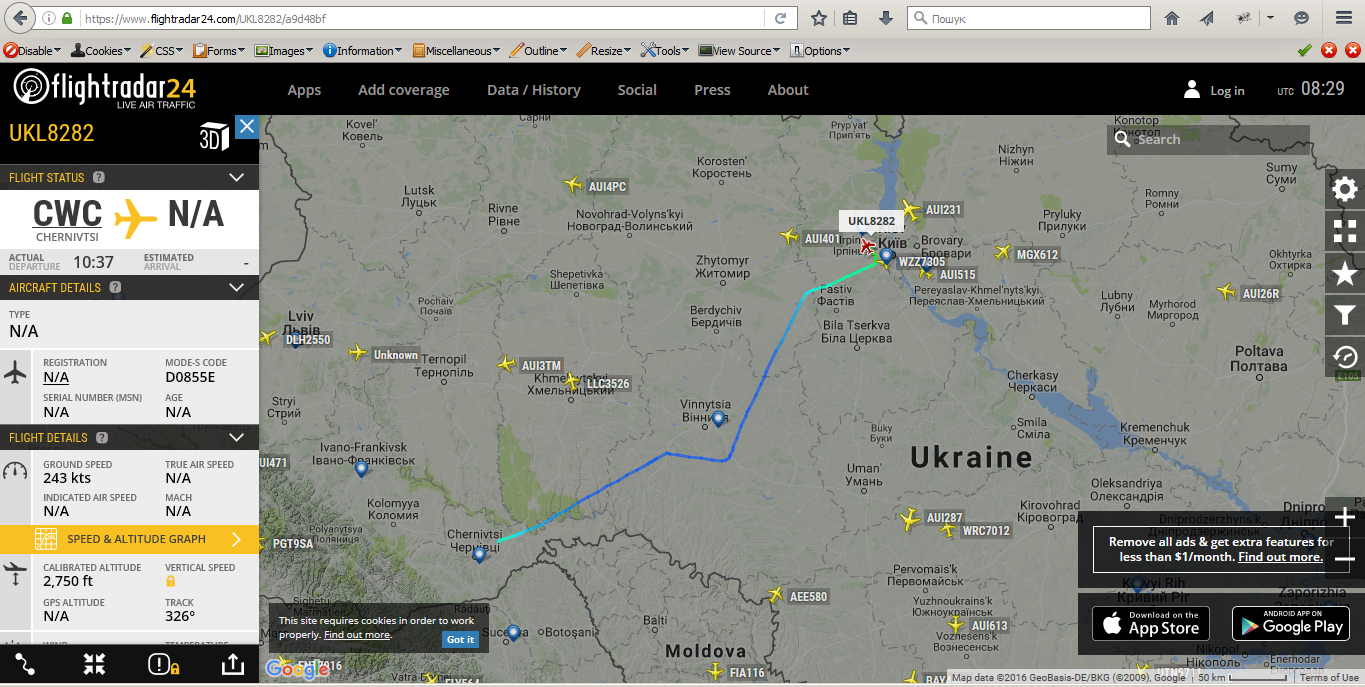 CWC - GML (Черновцы - Гостомель) какой-то борт полетел:
