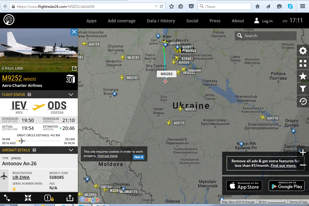 продолжает глючить: Жуляны - Одесса, видимо опять вместо Ан-140 UR-14005, высвечивает Ан-26 UR-DWA.