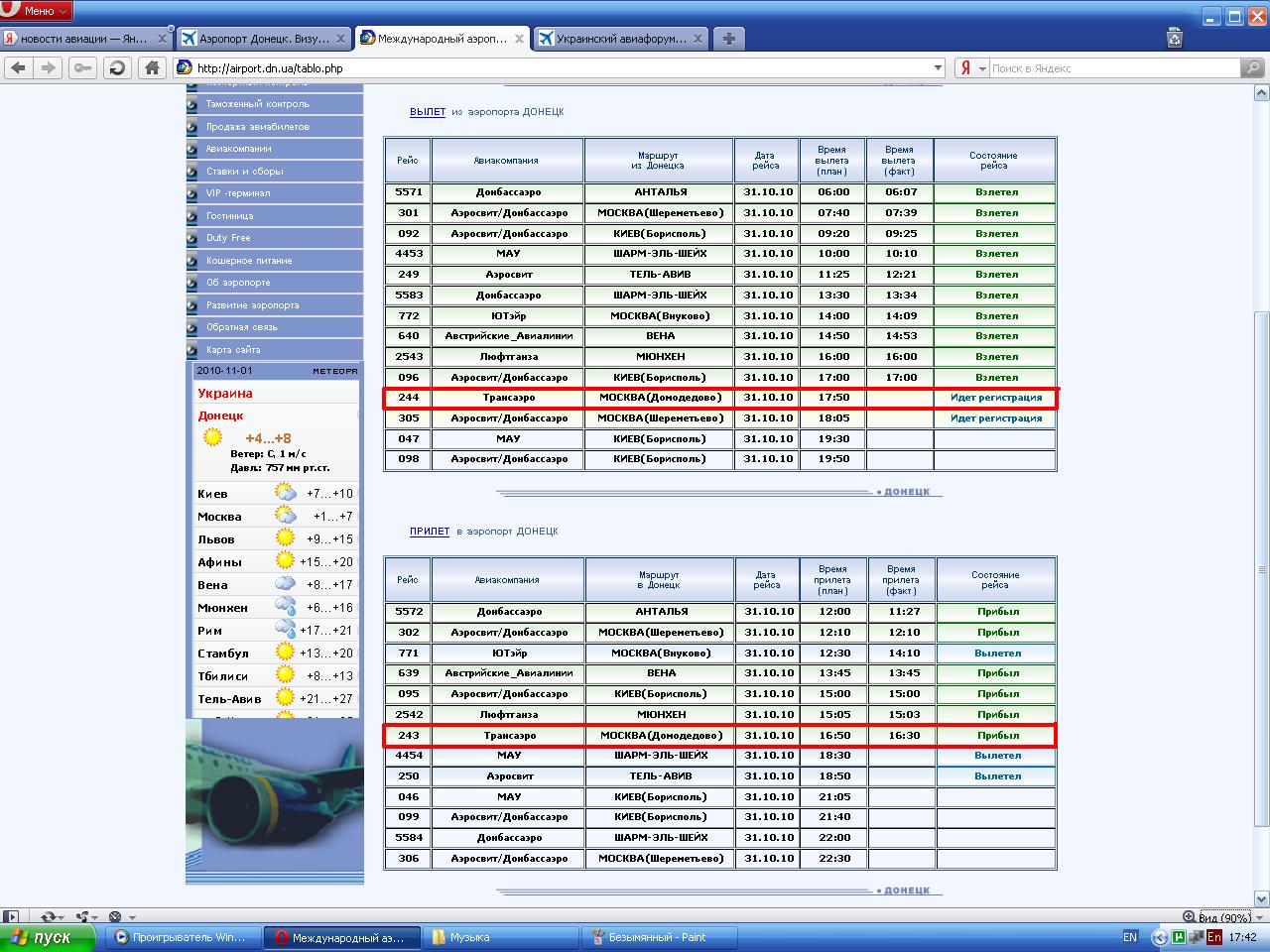 Сегодня 31 октября начала свою деятельность новая авиакомпания на восточном рынке авиаперевозок Украины, авиакомпания Трансаэро. Рейс Москва (Домодедово) - Донецк - Москва (Домодедово). Прилет в аэропорт Донецк в 16:50, вылет в аэропорт Домодедово в 17:50.