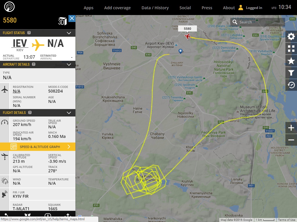 Под похожим кодом на прошлой неделе наматывал круги Diamond DA-42, частный самолетик. Лично наблюдал.UR5XCS писав:Код мілітарний ,але не ідентіфікується,розлякав піденно-західний район Києва та зник на малій висотіdevmind писав:Похоже на военный борт. Возможно, "пациент" 410-го завода.UR5XCS писав:Хто це... лампочку намалював ?