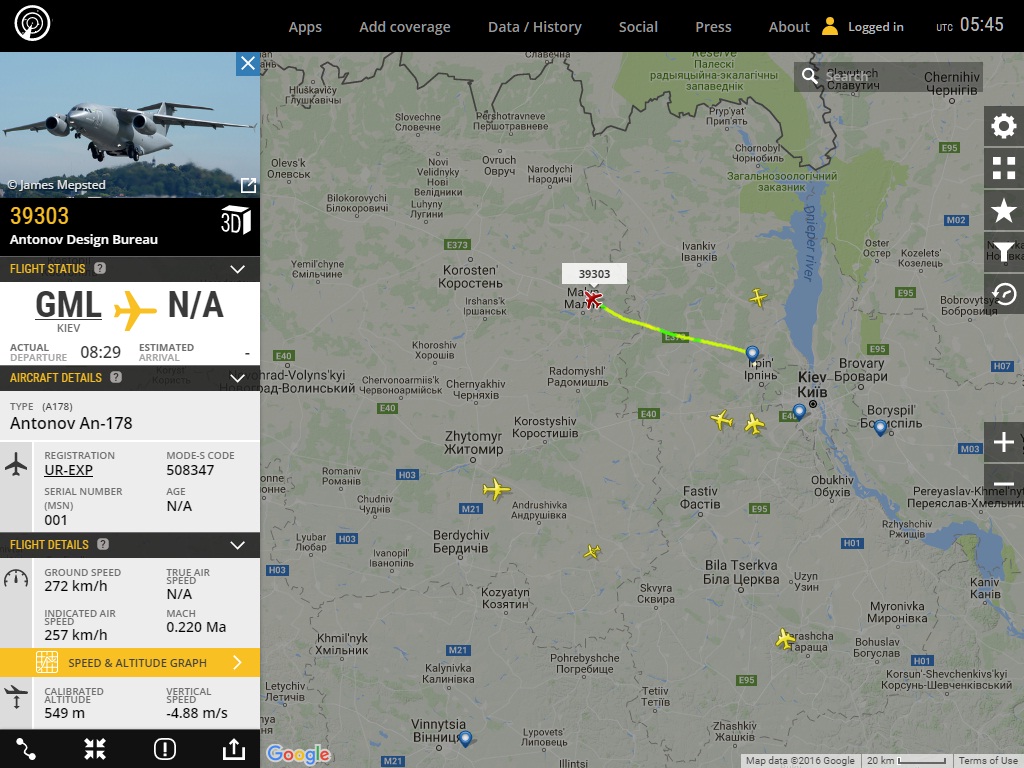 В таку погоду його на FL340 взагалі не видно лише чути, на наступний день літав нижче десь на FL150 - то вже можна було побачити.UR5XCS писав:Вчора його спостерігавFlyman писав:An-178 наматує кола