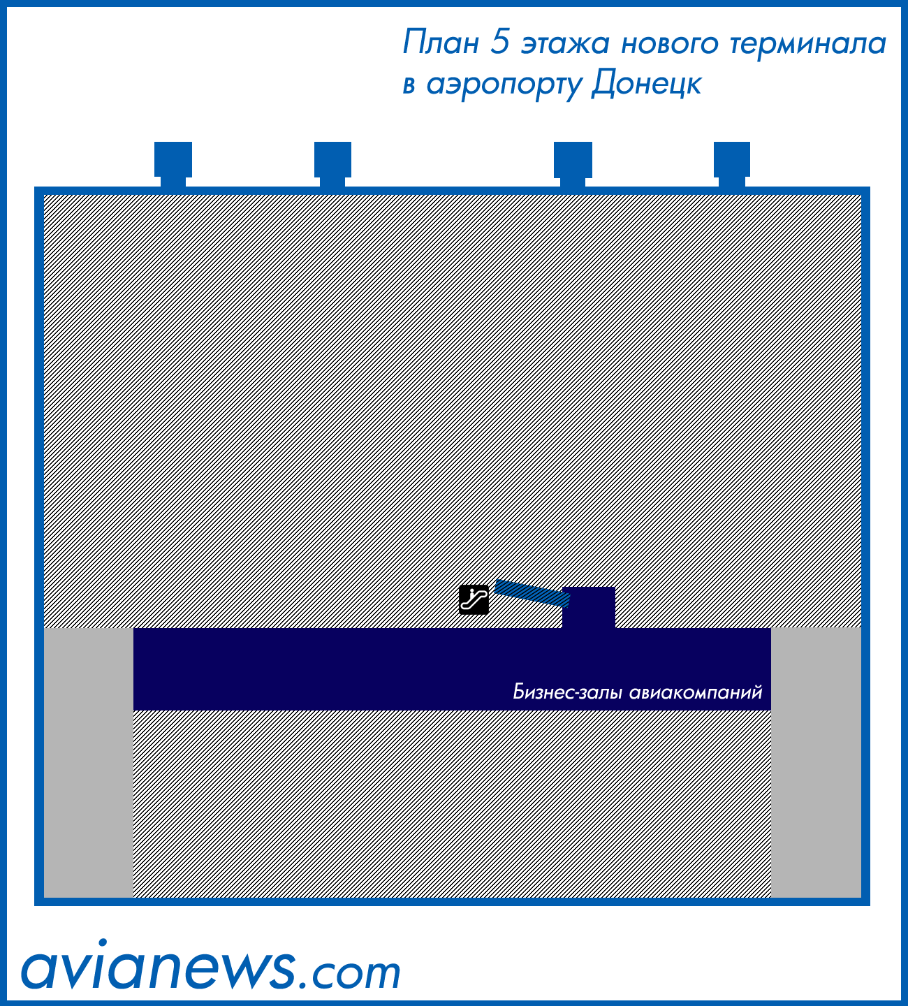 В Донецке с эстакады попадаете на 2 этаж, регистрируетесь, едите на эскалатере на 4 этаж, через телетрап попадаете в самолет.