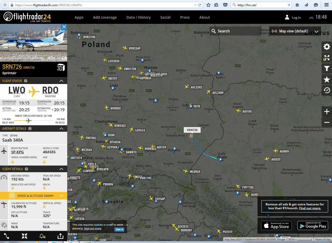 Интерсный рейс Львов-Радом (LWO-RDO), Saab-340 SP-KPG, регулярный что-ли?