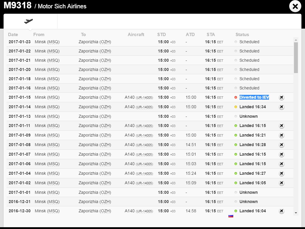 поціновувач писав:Чому Мінськ-Запоріжжя Ан-140 розвернувся і полетів на Київ майже долетівши??