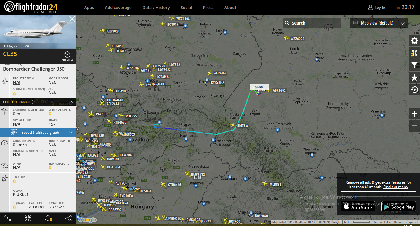 Нічого не робив,вони не мають права напряму літати (повітряний простір закрили) ,лише з заходом у простір Білорусі ( нібито з Білорусі летять )...mischko писав:https://www.flightradar24.com/CL35/ccc3bdf