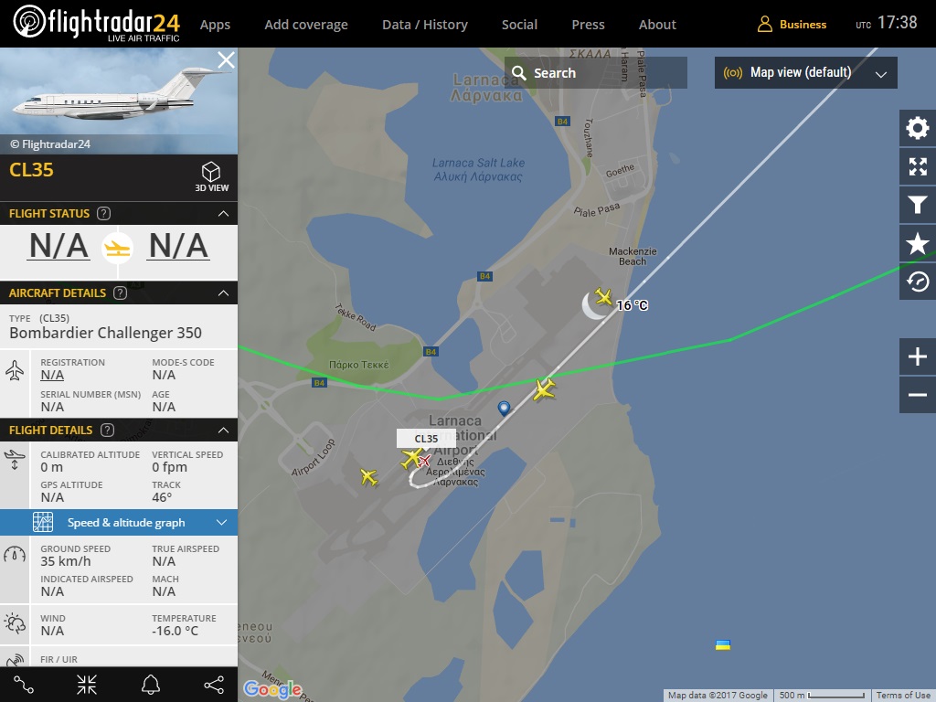Думаю не за загаром прилетели. На Кипре много оффшорок.UR5XCS писав:Нічого не робив,вони не мають права напряму літати (повітряний простір закрили) ,лише з заходом у простір Білорусі ( нібито з Білорусі летять )...mischko писав:https://www.flightradar24.com/CL35/ccc3bdf