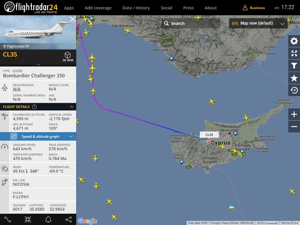 Думаю не за загаром прилетели. На Кипре много оффшорок.UR5XCS писав:Нічого не робив,вони не мають права напряму літати (повітряний простір закрили) ,лише з заходом у простір Білорусі ( нібито з Білорусі летять )...mischko писав:https://www.flightradar24.com/CL35/ccc3bdf
