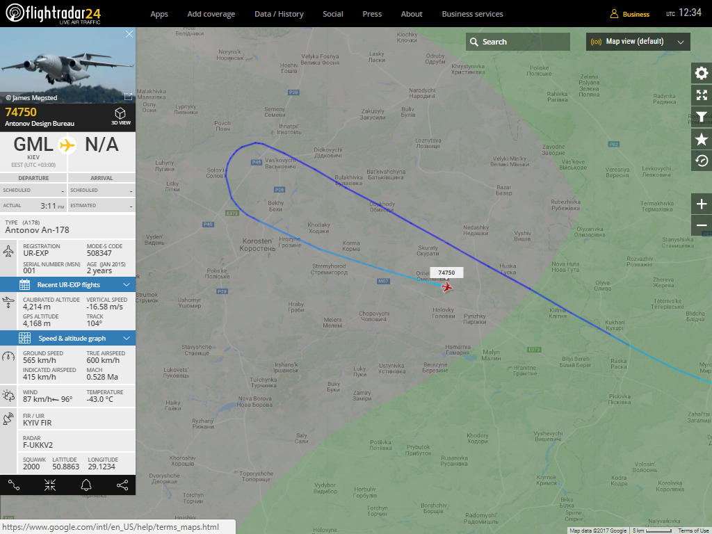 Antonov An-178 UR-EXP (взяв за хвіст своїм радаром,не бачив,хмарно,лише чув його