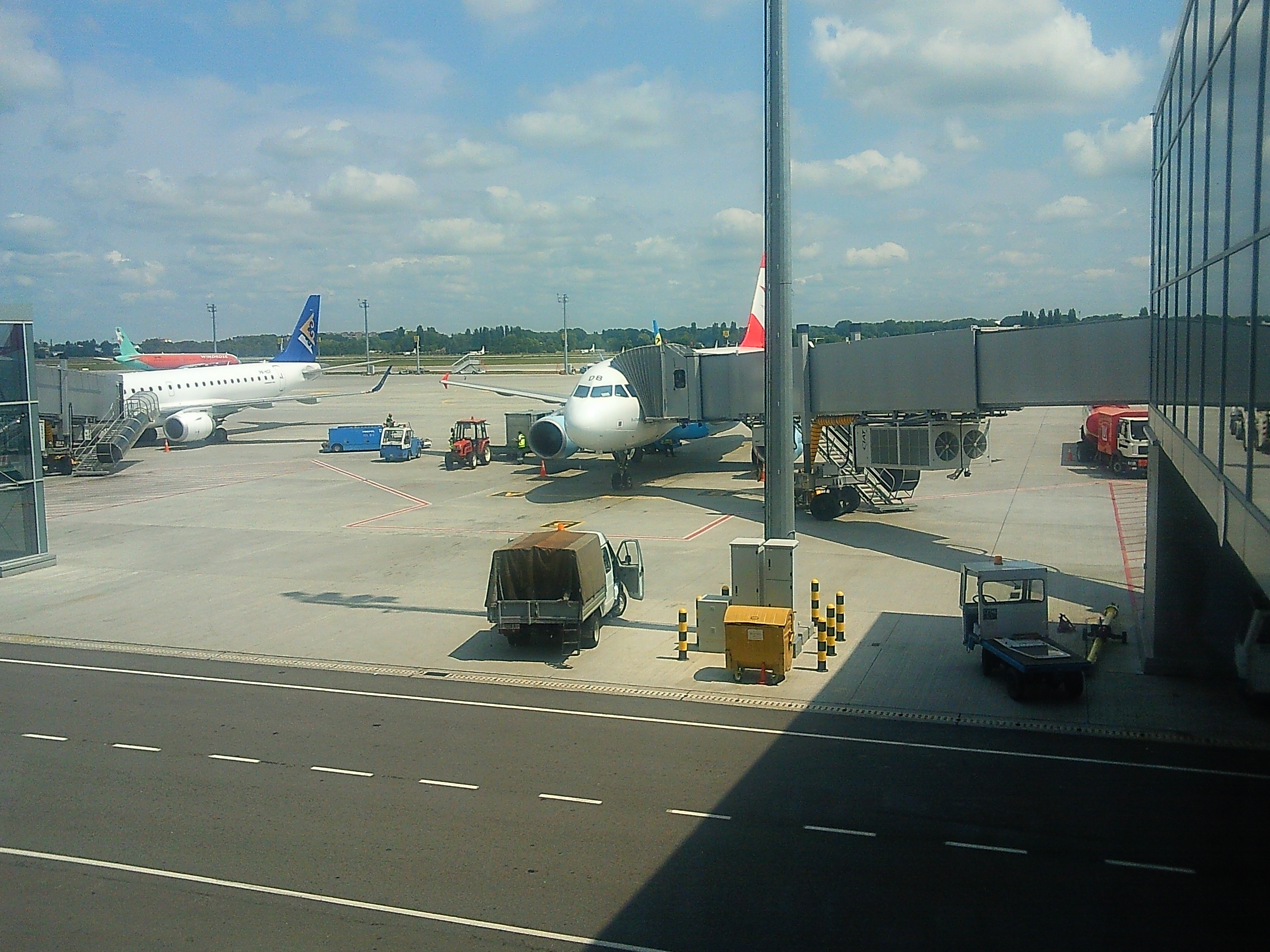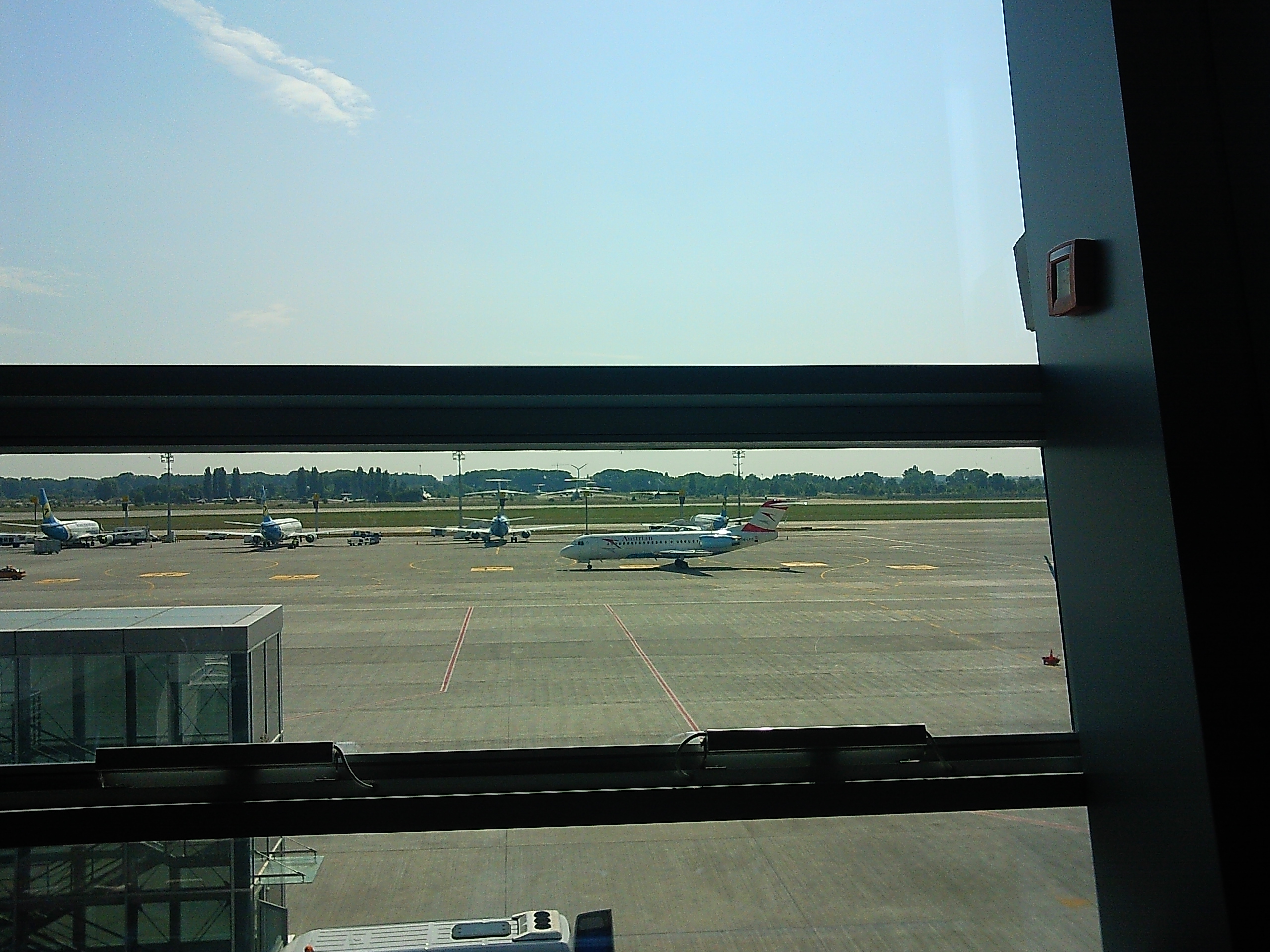 За 24 часа зарегистрировался онлайн на OS664. В системе стоял Fokker70, взял место 6F,сразу за «так называемым бизнес классом». До этого Austrian не летал, так же как и на Фоккере. Рейс утренний в 10:50. Какого-то черта дернуло приехать в Борисполь за 2 часа до отправления, хотя имел посадочный на руках. Как оказалось после – правильно сделал. Количество людей на вылет утром поражало. Паспортный контроль не справлялся и очередь доходила прямо на секьюрити чек и таких потоков было три. В общем, все проверки заняли около часа, осталось подождать немного и объявили посадку на 5 минут ранее заявленного. Я даже удивился зачем, самолет ведь небольшой за 15 минут точно все разместимся. Ну ок пошел в автобус, стали ждать пассажиров, 5 минут, 10, 15, да сколько можно…после 20 минут ожидания тронулись. Вопрос, зачем начинать посадку ранее нужного? Это маринование людей при +26 улыбок не добавляет.