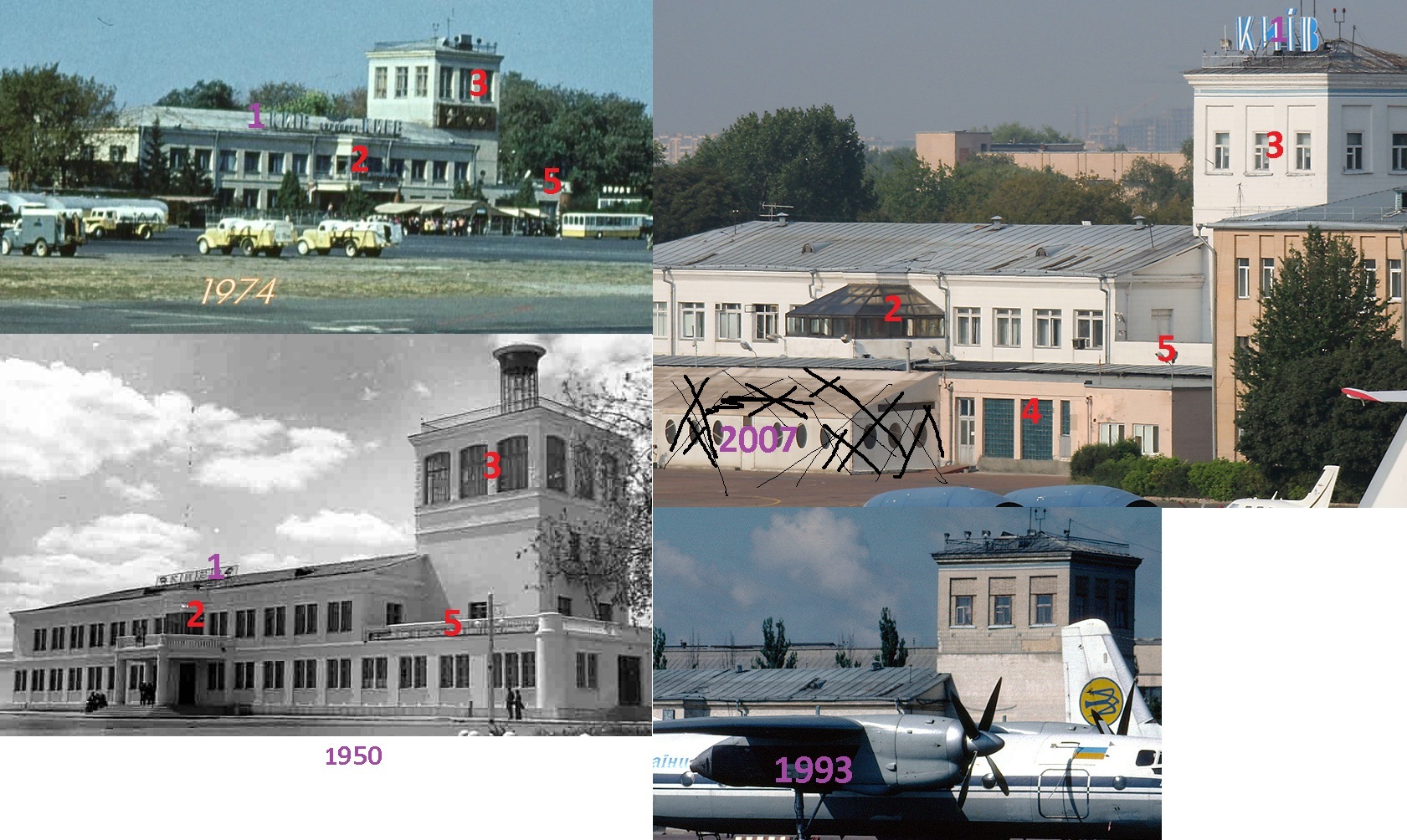 Я просмотрел много фотографий где более и менее прояснилась картинка что в период 1950-2010 менялись окна,забор,цвет,пристройка появилась,название аэропорта.