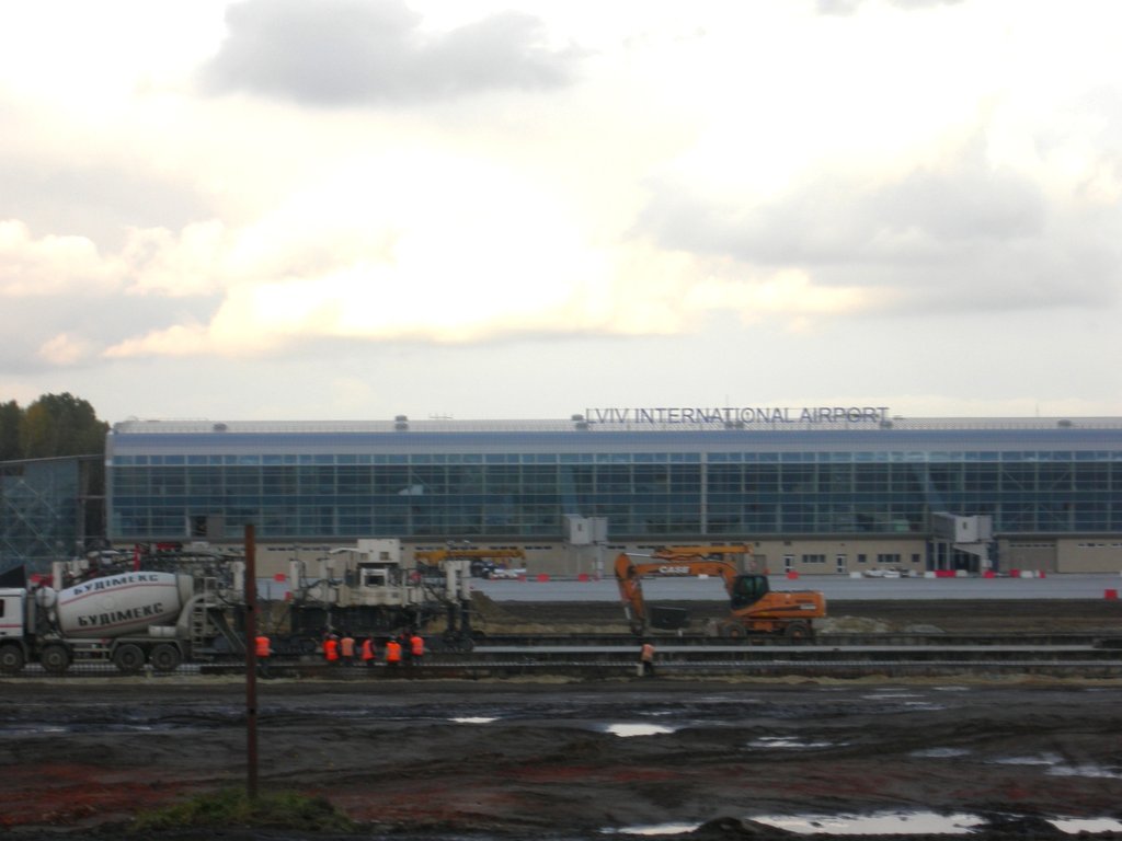 Другу частину ЗПС роблять дуже хорошими темпами. Купа народу і техніки. Двіж серйозний. Ще б усе так у нас будували. Вантажні машини літають з інтервалом 1-2хв. Будівельникам не позаздриш. Над головами взлітають літаки, а при взльоті їх здуває і накриває пилюкою і тд.