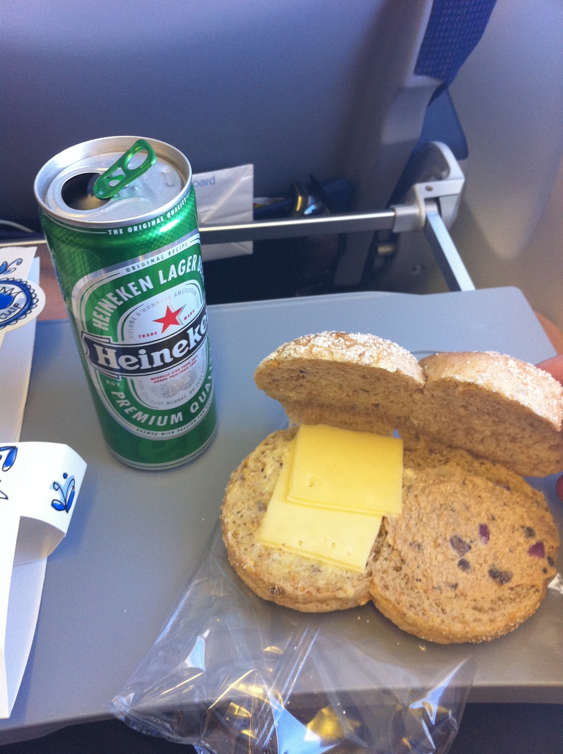 KLM. Pейс LHR - AMS (Лондон Хитроу - Амстердам). Длительность полета где-то 45 минут. Питание вообщем-то вот, на фото, плюс бутылочка Heineken