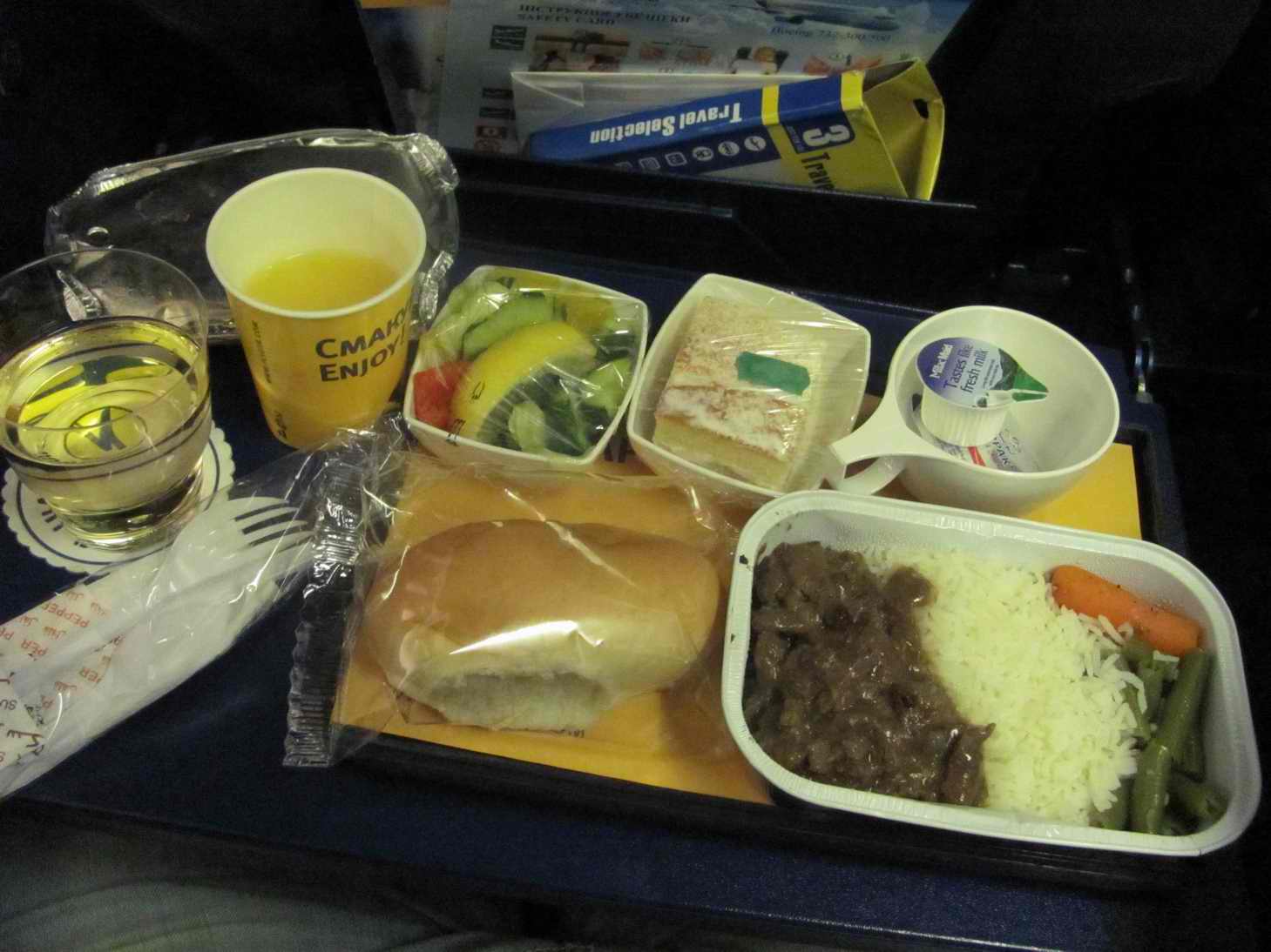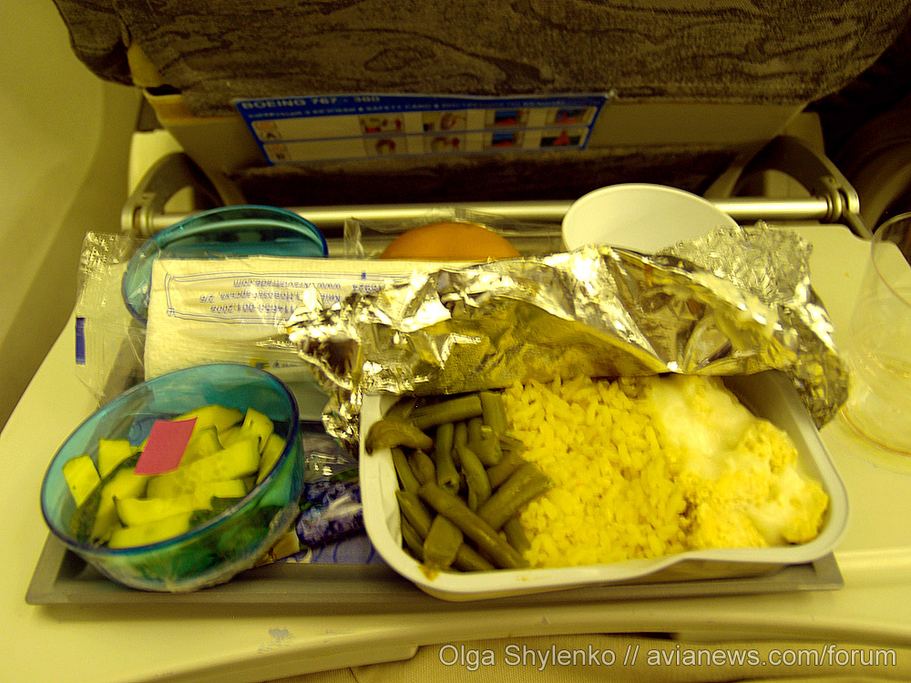 Второй раз давали на выбор мясо или рыбу. Я выбрал мясо, оно оказалось типа как рагу с тушеной капустой, вермишелью, луком и т.д., но очень оказалось вкусным, что ели влезло, потом отдельно лежала капуста, огурец и помидор, ветчина, сыр, масло, булочка и марс+ стандартный набор чай, кофе, соки, вино. Я ещё так не наедался за весь опыт перелётов. Еда была Тайская.