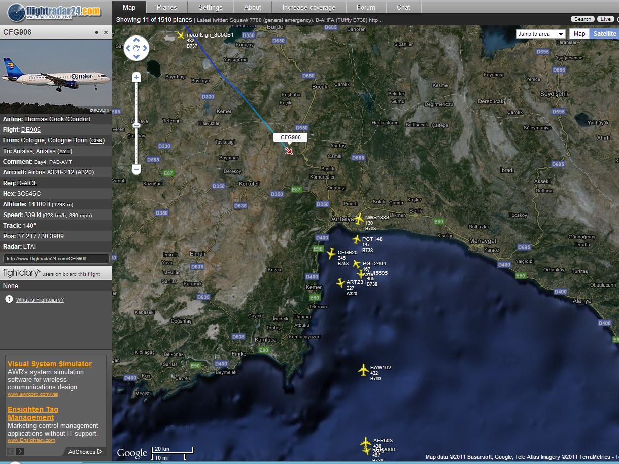 F24 добавили новий радар в Анталії, а також додали можливість перегляду типу літака та швидкості не ідентифікуючи його....