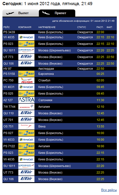 Обратный рейс SU1811 вылетает из Харькова в 06.40 ч., прилетает в Москву в 9.10 ч. (время местное).