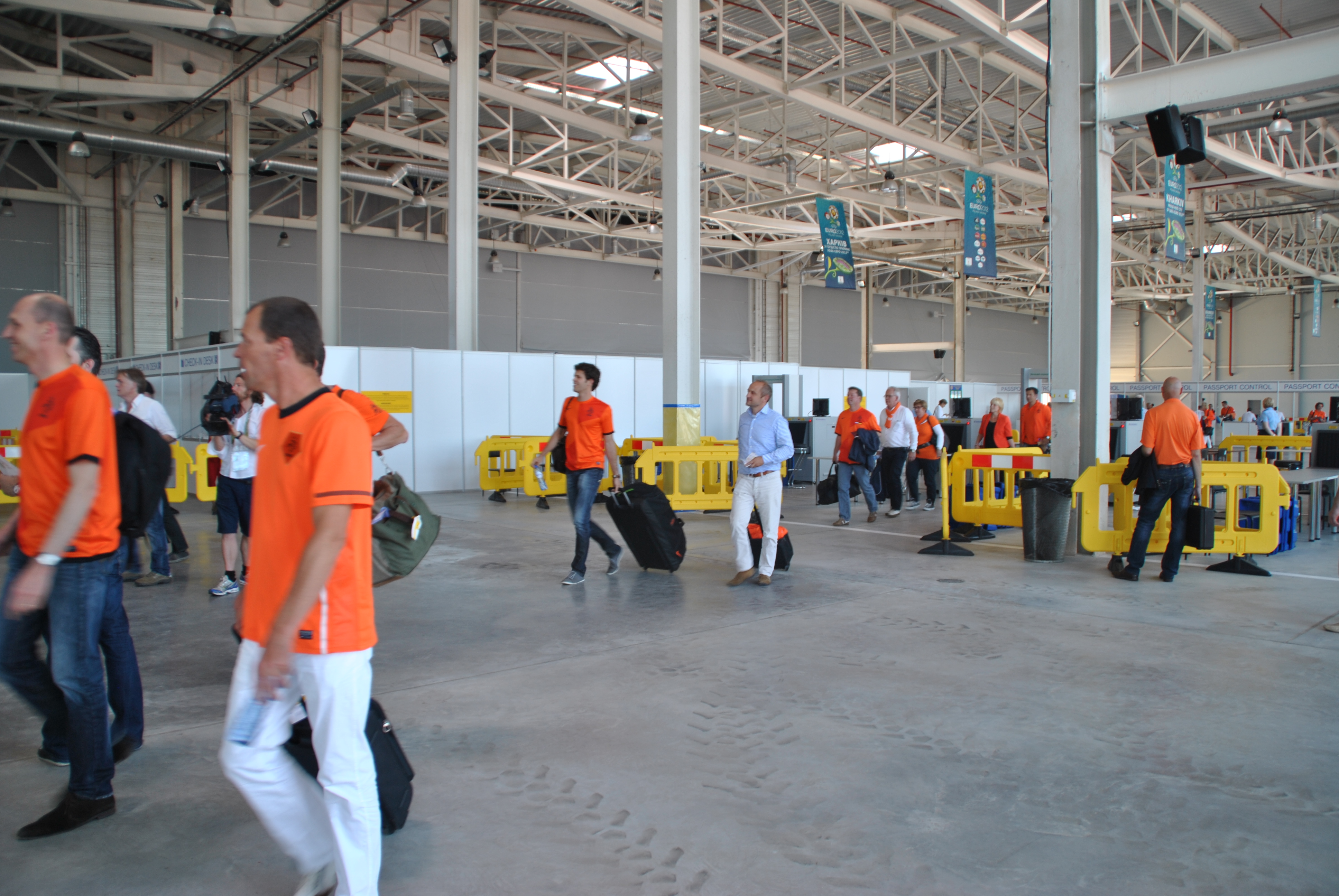 Чартеры с голландцами пропускают быстро через временный терминал. Очень много стоек паспортного контроля. Сразу садят в автобусы и уезжают.