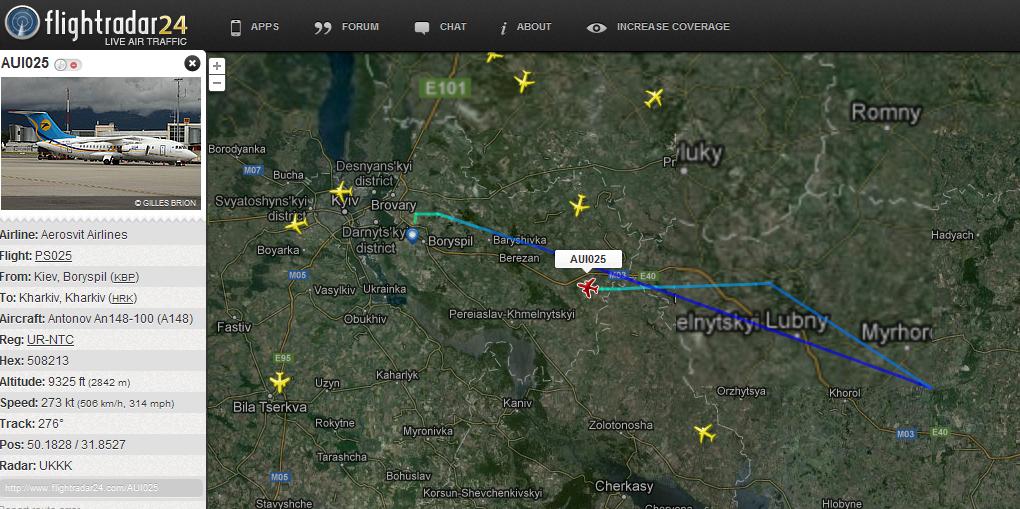 По ФР24 виходить, що Ан-148 МАУ не долетів до Харкова і повертається назад, чи це глюк?