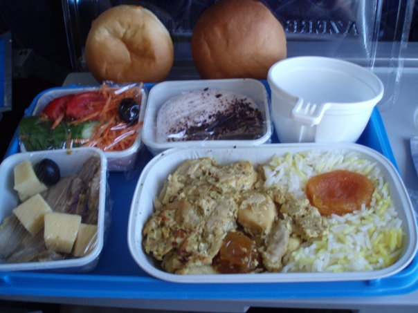 У меню - рис з овочами та куркою, пудинг, паста з овочами, пюре з фруктів, халва, крекер... Багато, але не дуже смачно... Але наїстися можна легко.