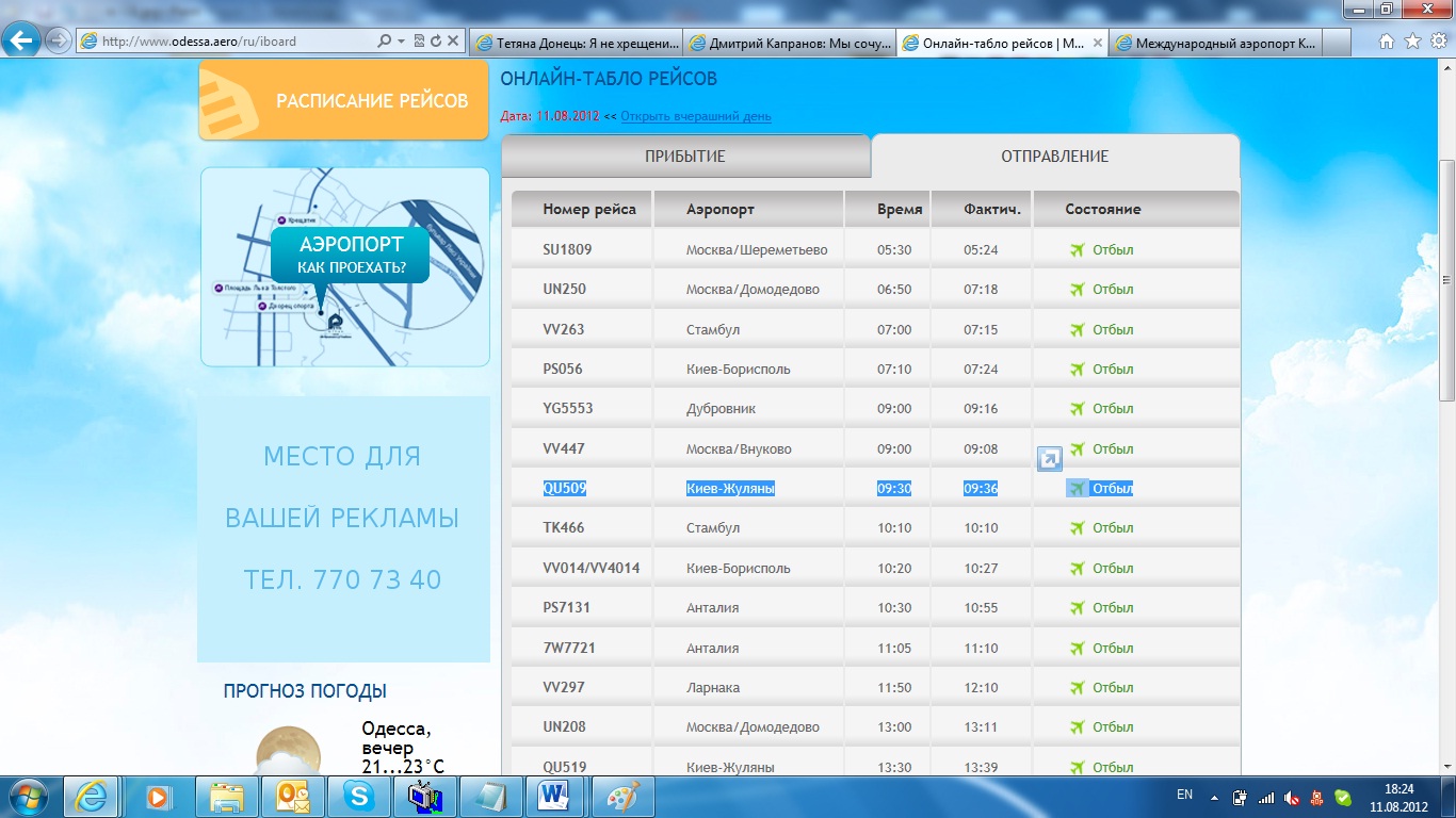 Это что ещё за фокус с онлайн-табло Жулян (на принт-скрине)? Утренний рейс Ютов QU509 из Одессы вылетел в Киев в 9:36, а в Жулянах на табло до сих пор (уже вечер) не обозначился как прибывший... А если кто-то родственников из Одессы ждет и на жулянское он-лайн табло смотрит? Так и посидеть несложно...