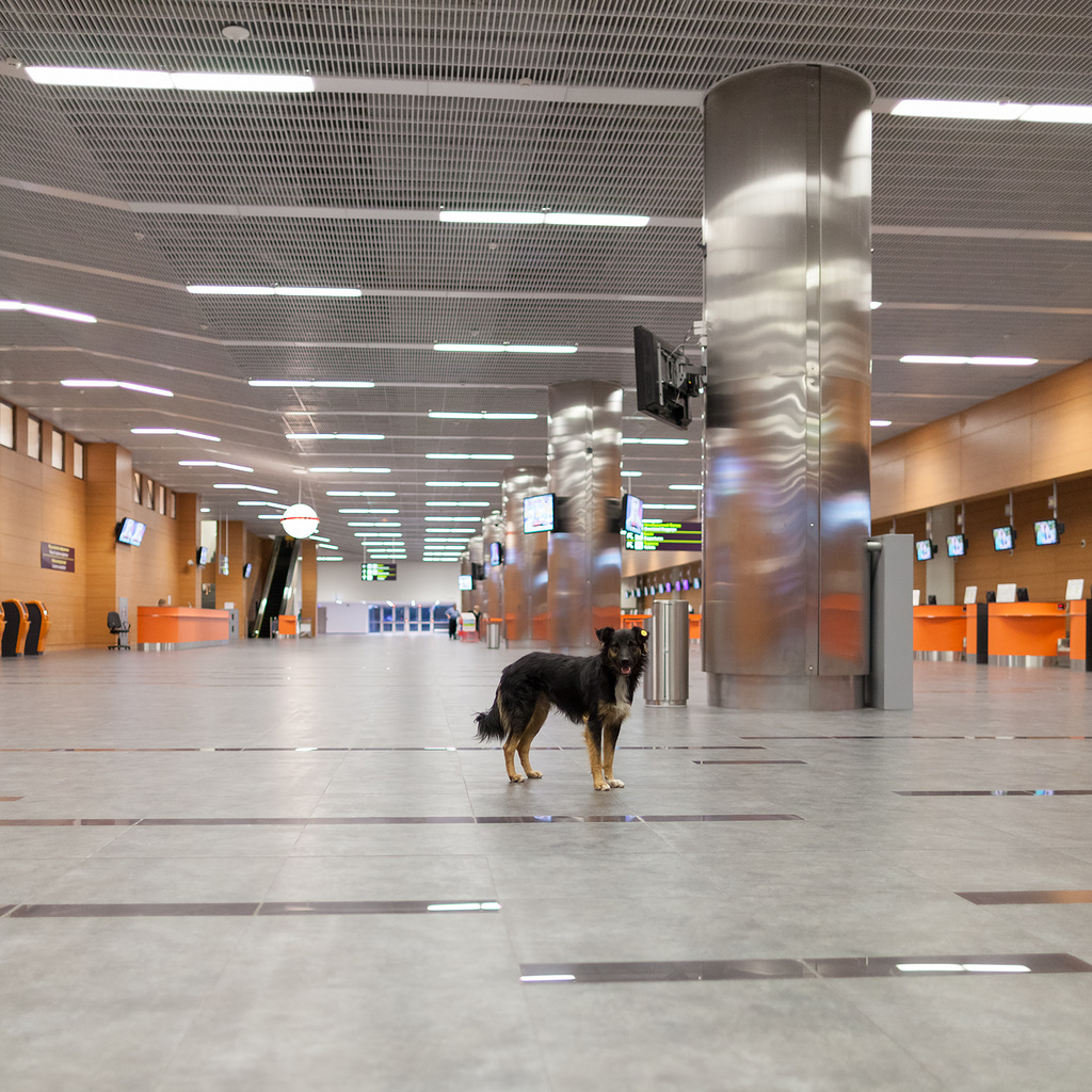 - пассажиров в терминале тоже нет, фото выше с собакой в полной мере отражает текущий пассажиропоток.