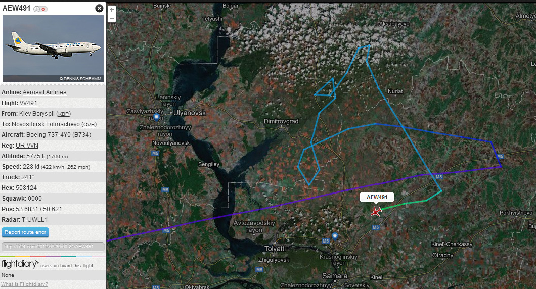 Рейс был, судя по всему, не 429-й (это Алма-Ата), а VV491. Он действительно мотал непонятные круги под Самарой.