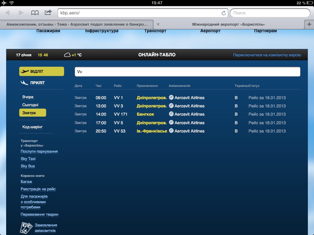 Справедливости ради стоит отметить, что время от времени перевозчик всё же осуществляет выплаты своим контрагентам. Скажем, «АэроСвит» частично оплатил услуги аэропорта Борисполь, который ранее приостанавливал обслуживание рейсов авиакомпании. Транзакция позволила возобновить обслуживание самолётов. Сегодня идут переговоры о дальнейшей реструктуризации задолженности перевозчика перед аэропортом.