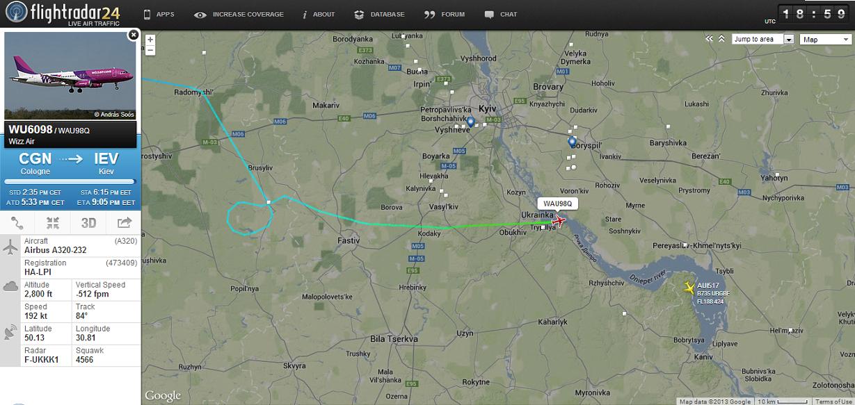 Слушаю переговоры. Пока ждут улучшения погоды. Обычно Трансаэро возвращается назад в Москву. С Борисполем чего-то не сложилось...У них, по-моему, запасной Одесса... 3 ВС Визза висят недалеко от Жулян (точка ZK). Думаю еще пару минут покружат и пойдут на Борисполь. Один из них пытался сесть, но не получилось, принимают решение.