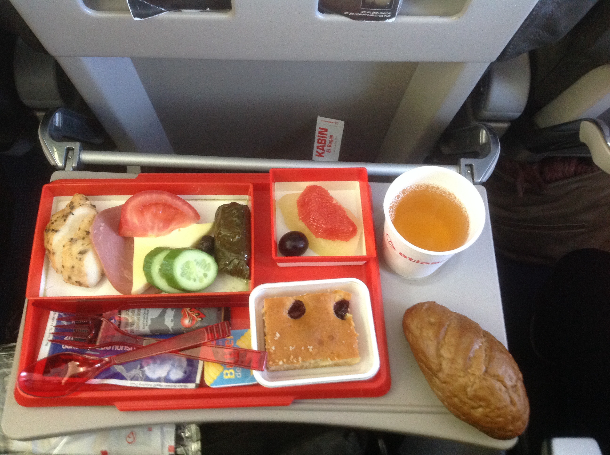 Минут через 15 раздали бутерброд-круассан (сыр, ветчина, листик салата) и чай/кофе.