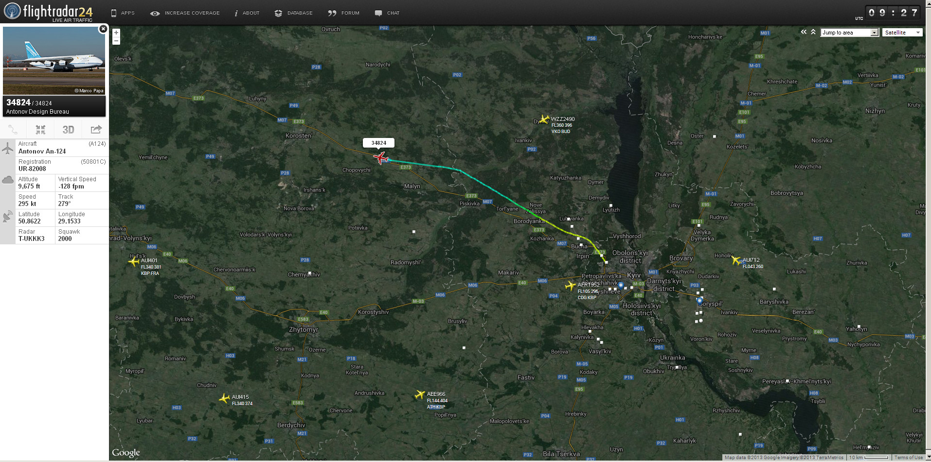 Отримав на радість мені, й мабуть всім споттерам ADS-B трансподер з відображенням ГПС координат, до цього моменту всі Руслани мали все крім гпс координат. Навідміну від інших безкоординатників Руслани мали і Ground Speed і True track
