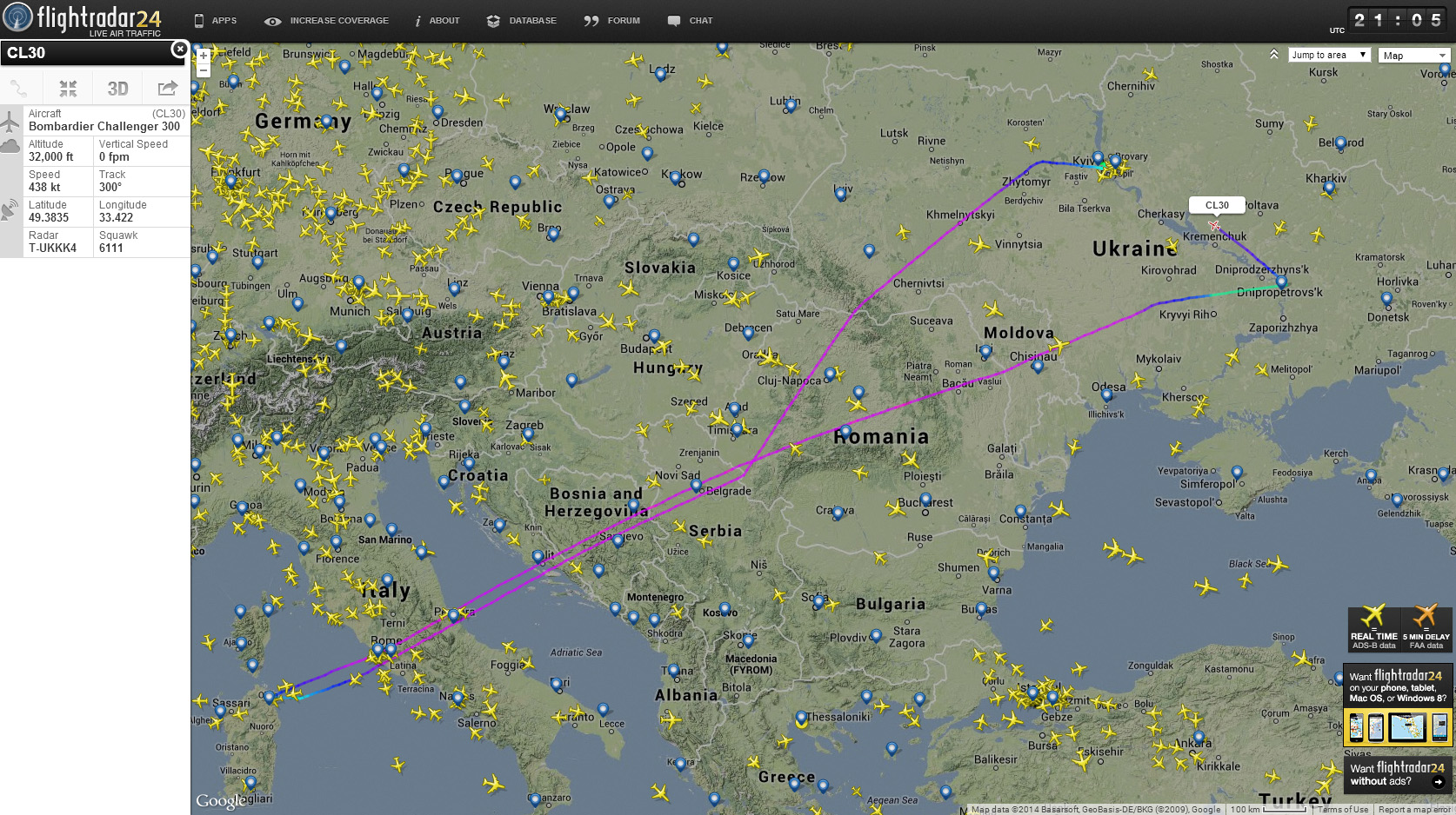 (К сожаленью, не знаю как сделать "снимок" с Флайтрадара).
