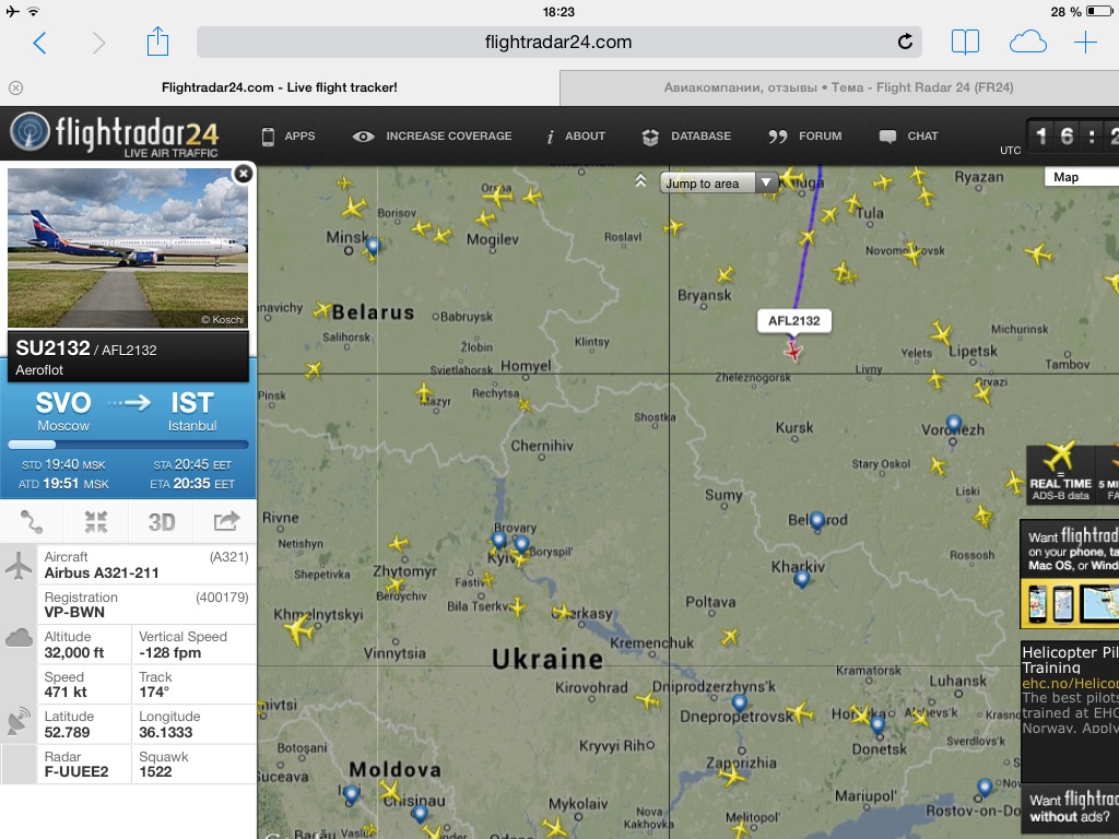 Со вчерашнего дня АФЛ во всю начал гонять в нашем авиапространстве. Даже Москва-Анапа через Украину.