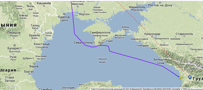 Бідняга WUC полетів в напрямку Турції через обмеженість простору над Кримом