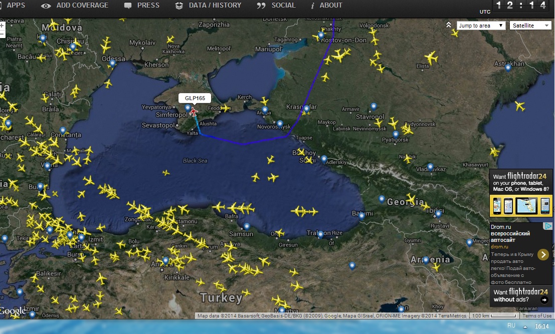 Zahar писав:Если Вы об этом, как на скрине, то все очень просто, на таком маршруте обслуживание борта ведут Крымские диспетчера, да и в Гвардейском вояки летают активно.Гость писав:Ребятя подскажите кто знает, почему некоторые рейс в Крым летят над самим Крымом из Анапы, а некоторые облетаю пол Черного моря через Краснодар и Новороссийск?