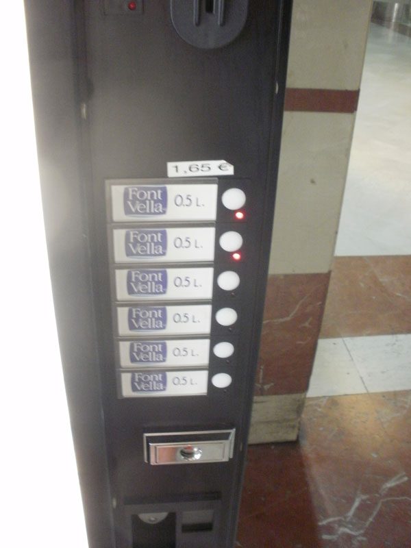 Найдешевша водичка 0,5 проста негазована буде коштувати у автоматі 1,65 євро.