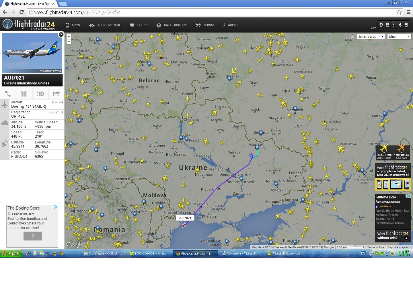 странный полёт Москва-Симферополь (аннексирован Россией) (фото1). Для сравнения на фото №2 как обычно летят самолёты по этому маршруту