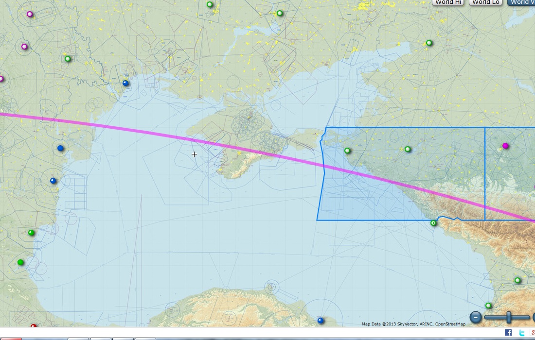 если на прямую, без всяких маршрутов, то через крым, могли бы и через Турцию взять, однозначно короче, но значит что-то есть в их расчётах или это из серии как пегасус в Харьков летал...