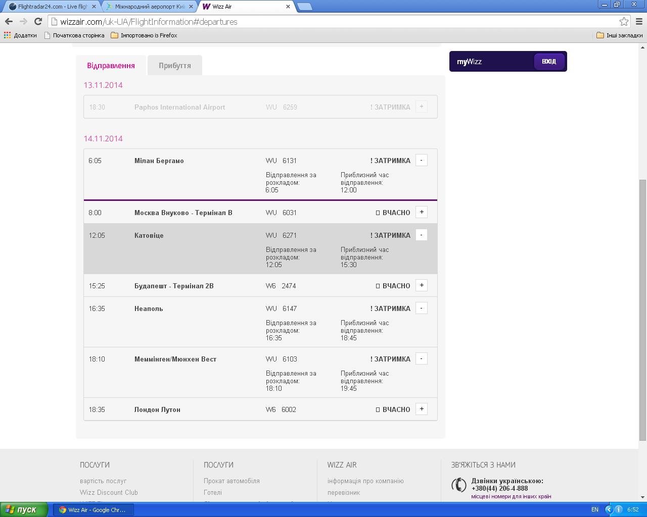 Погляньте "СТАТУС РЕЙСУ" на сайті Віз-Ейру, вище я давав скрін.... Там усе добре зрозуміло...