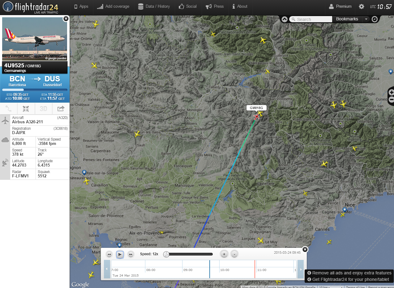 Пілоти розбився на півдні Франції Airbus A320 виходили на зв'язок з диспетчерами в 10:30 - за хвилину до початку раптового зниження.