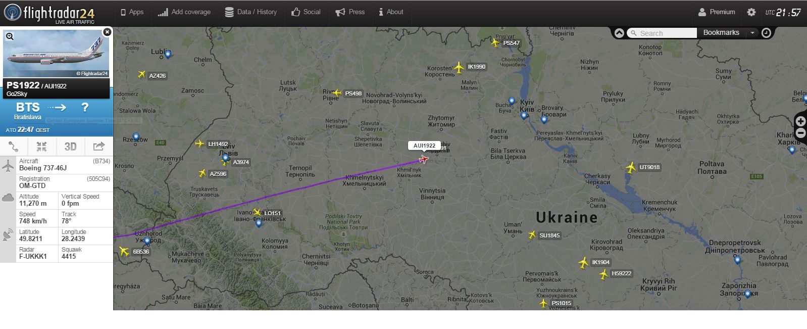 О, чорт забирай. Точно, дякую.maxgalkov писав:Там Братислава, а не Батуміnik-dem писав:Тому що Батумі не на заході. Просто посуньте мапу та побачте реальне місце вильоту. У FR24 таке буває інколи.