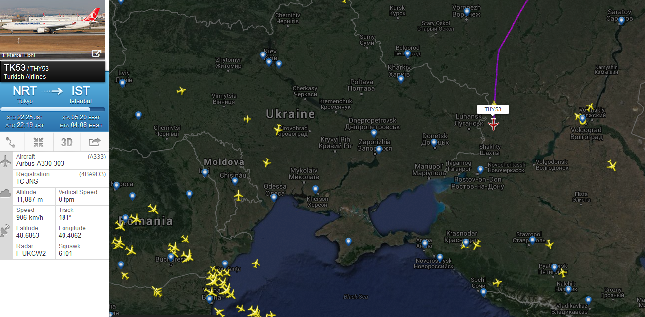 Доречі зараз по тій трасі летить Emirates. Згідно Вашого посилання такі авіакомпанії за безпеку не переживають...KKS писав:Ну да да летіти в 10км від кордону з недореспубліками безпечніше. Причому навіть в якохось 100км від того місця де вже шось таки запускалось з землі, і таки вже збило. Це тру безпечніше. Особливо вся східно "прикордонна" траса над всілякими полігонами з орками, це також дуже безпечно, бо вітер!AQS писав:... и безопасность.