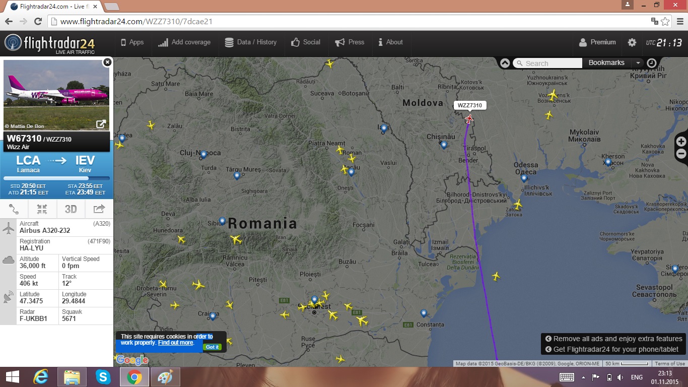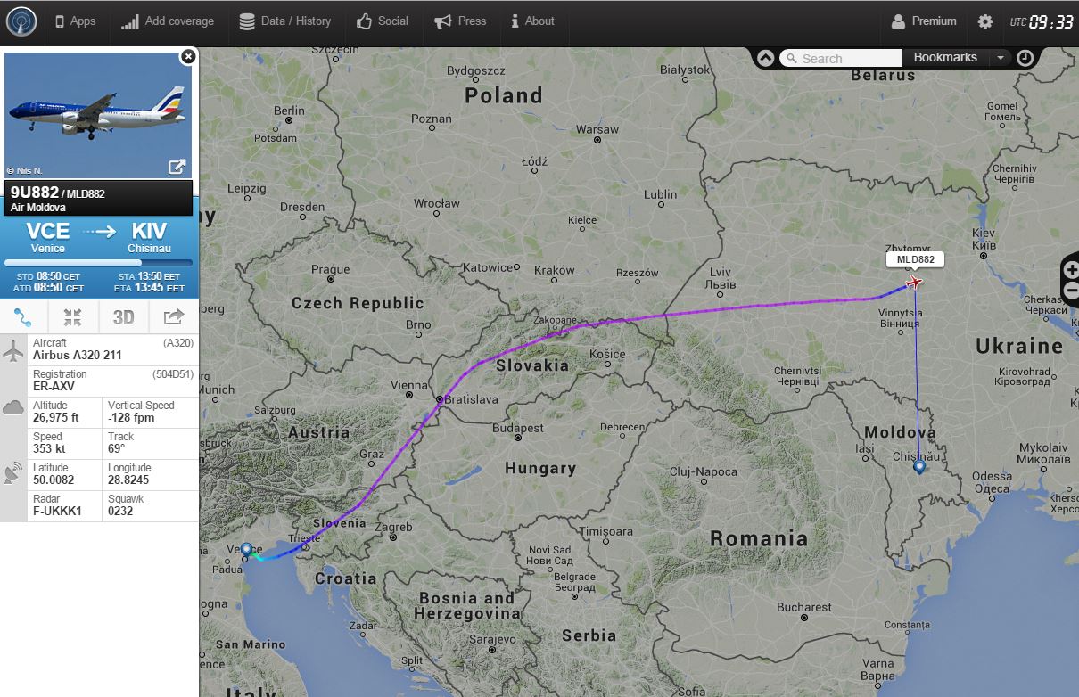 Как-то странно Wizz Air летит. На 5 минут в Молдову залетел, интересно для чего? Почему его Одесса не устраивает?